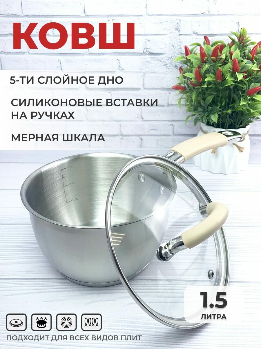 Ковшик для кухни из нержавеющей стали с крышкой 1,5 л, ковш для газовой, электрической, индукционной плиты: сравнение цен, характеристики, фото, актуальное наличие и цены.