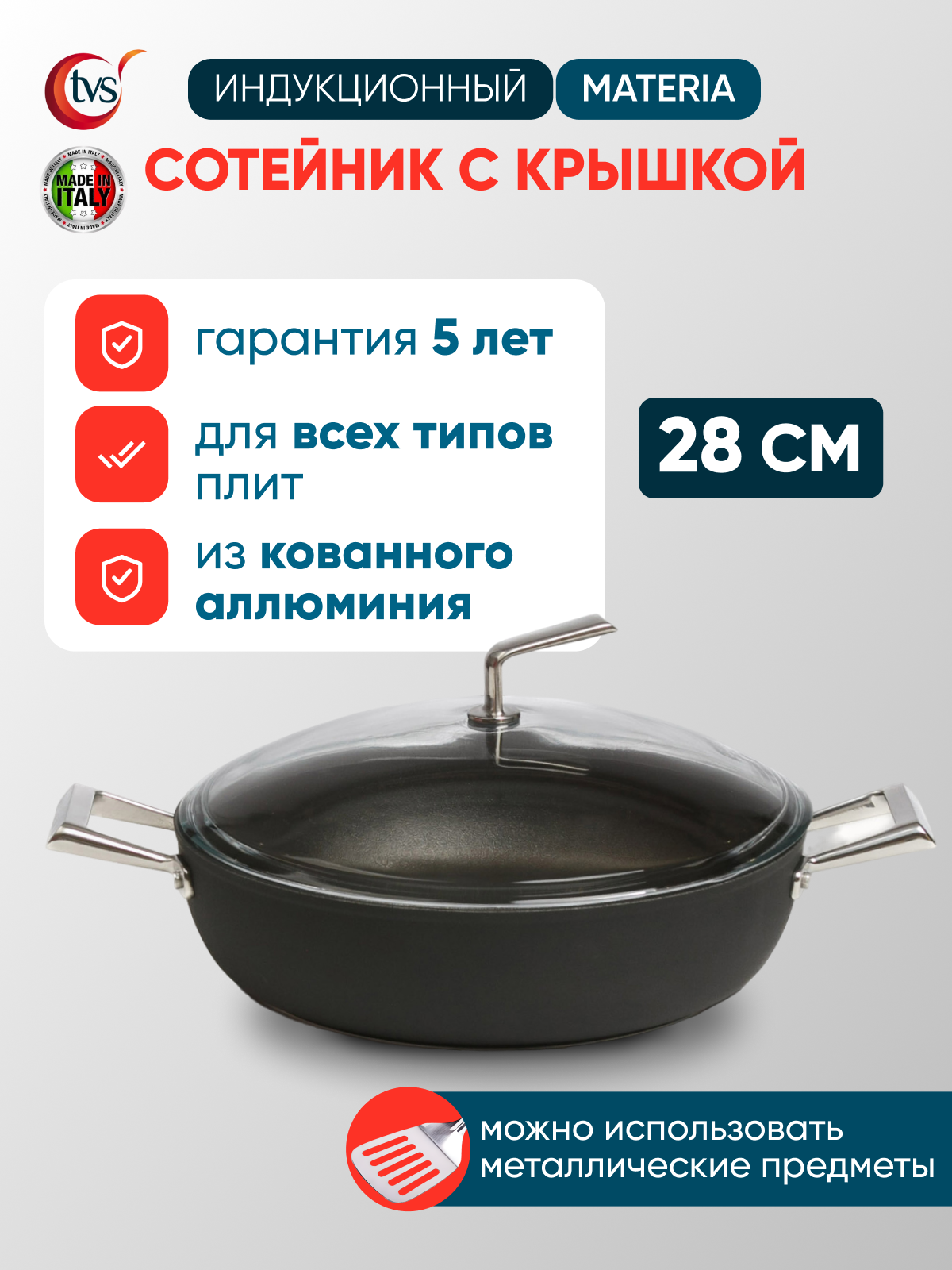Сотейник с крышкой 28 см TVS Materia Induction для индукционной плиты: сравнение цен, характеристики, фото, актуальное наличие и цены.