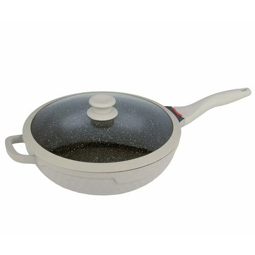 Коллекция MAFFIN изготовлена из литого алюминия, благодаря чему посуда обладает отличной теплопроводностью и мелловиностью. Внутреннее покрытие состоит из двухслойного мраморного антипригарного покрытия, опо идеально падкое, легко моется, можно жернь с малым количеством масла или вовсе без него. Внешняя отделка с текстурным кованным эффектом и эмалью кремового цвета. Бакелитовая ручка на корпусе с эффектом зот тоист в двет корпуса, не скользит и не нагревается. Стеклянная крышка с силиконовым ободком и бакелитовой ручкой с эффектом soft touch. Универсальное дно позволяет готовить на всех видах плитивключая индукционные. Можно мыть в посудомоечной машине.