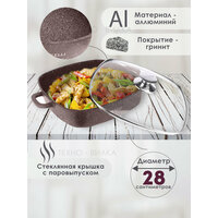 Сотейник с крышкой диаметром 28 см, 26 см, 24 см который будет служить вам долгие годы! Это идеальный сотейник для индукционной плиты! Его главное приемущество - это его покрытие. Гранитное покрытие - экологичное, т. к. под воздействием высоких температур не отделяется и не попадает в пищу, это гарантирует безопасность для здоровья человека. Сковорода с гранитным покрытием - это то, что нужно на вашей кухни. Материал сотейника алюминий, гранитное покрытие , Сотейник с крышкой подходит для всех видов плит: электрических, газовых, керамических, галогенных, индукционных, а также для духовки и гриля. Сотейник-сковорода для индукционной плиты станет прекрасным подарком на день рождения и 8 марта. Стеклянная крышка с пароотводом. Толстое дно сковородки сделает ваше блюдо вкуснее. Принцип чугуна-сохранит тепло.