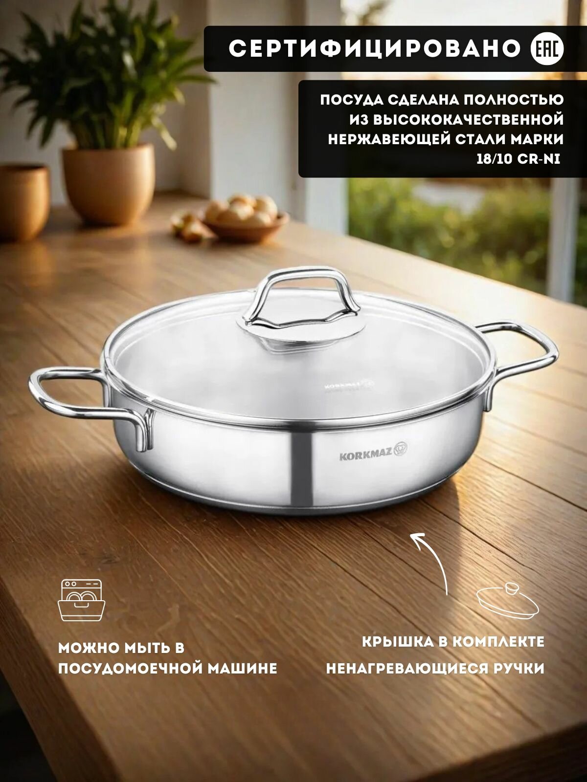 Сотейник серии Perla из нержавеющей стали со стеклянной крышкой 3,0 л (Korkmaz): сравнение цен, характеристики, фото, актуальное наличие и цены.