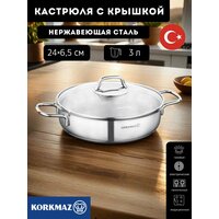 Купить Сотейник серии Perla из нержавеющей стали со стеклянной крышкой 3,0 л (Korkmaz) с доставкой по всей России.