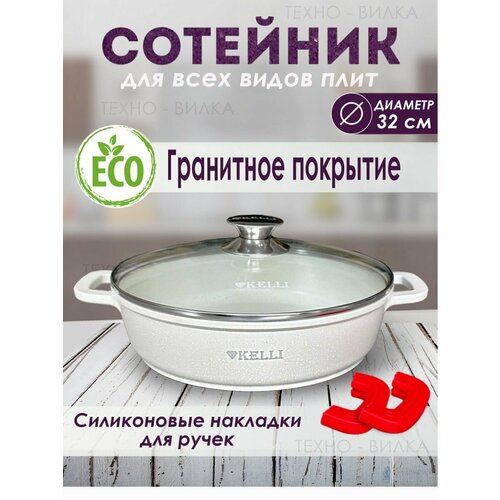 Купить Сотейник техно-вилка KELLI с крышкой, гранитное покрытие, 32 см, белый с доставкой по всей России. Сотейник техно-вилка KELLI с крышкой, гранитное покрытие, 32 см, белый: сравнение цен, характеристики, фото, актуальное наличие и цены.
