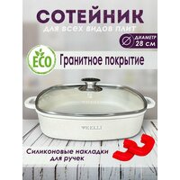 Сотейник техно-вилка KELLI с крышкой, гранитное покрытие, квадратный, 28 см, белый: сравнение цен, характеристики, фото, актуальное наличие и цены.