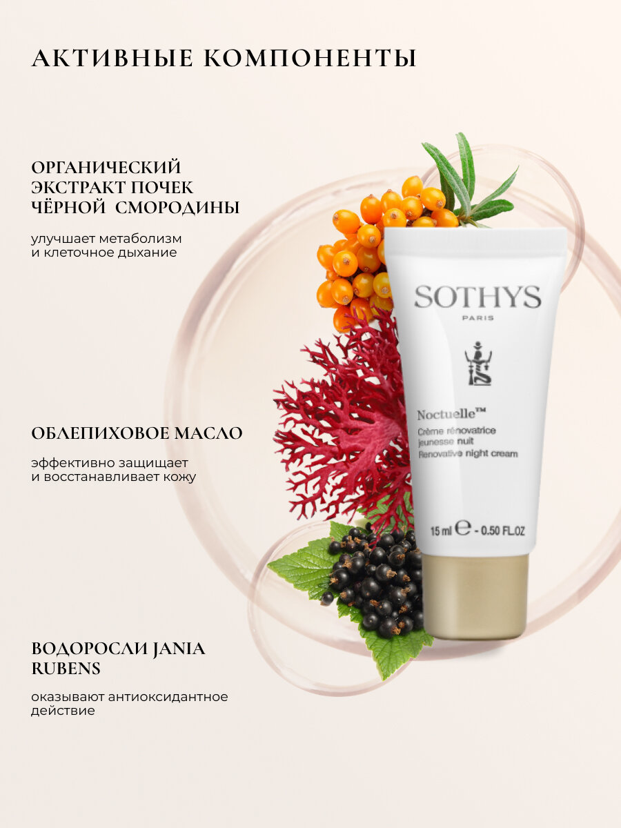 | Способ применения | Наносите вечером, после сыворотки, на лицо и шею. Избегайте контура глаз. Подходит для чувствительной кожи. Можно наносить плотным слоем для "расслабляющего моделирующего массажа", используя эксклюзивную технику нанесения Sothys, а затем массировать в избытке. |