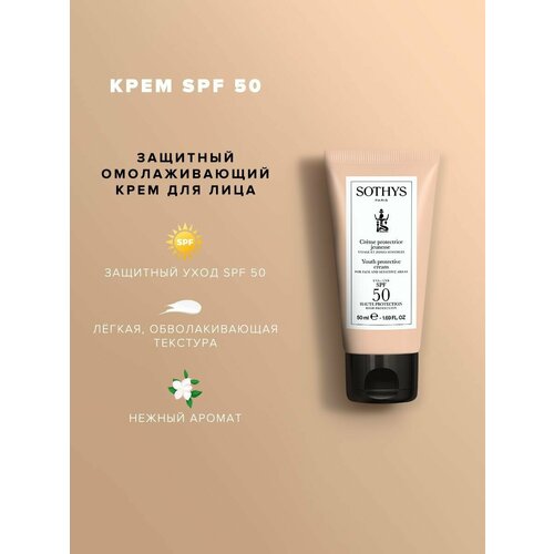Sothys представляет вам омолаживающий защитный крем Youth protective cream for face and sensitive areas SPF50, предназначенный для лица и чувствительных зон.