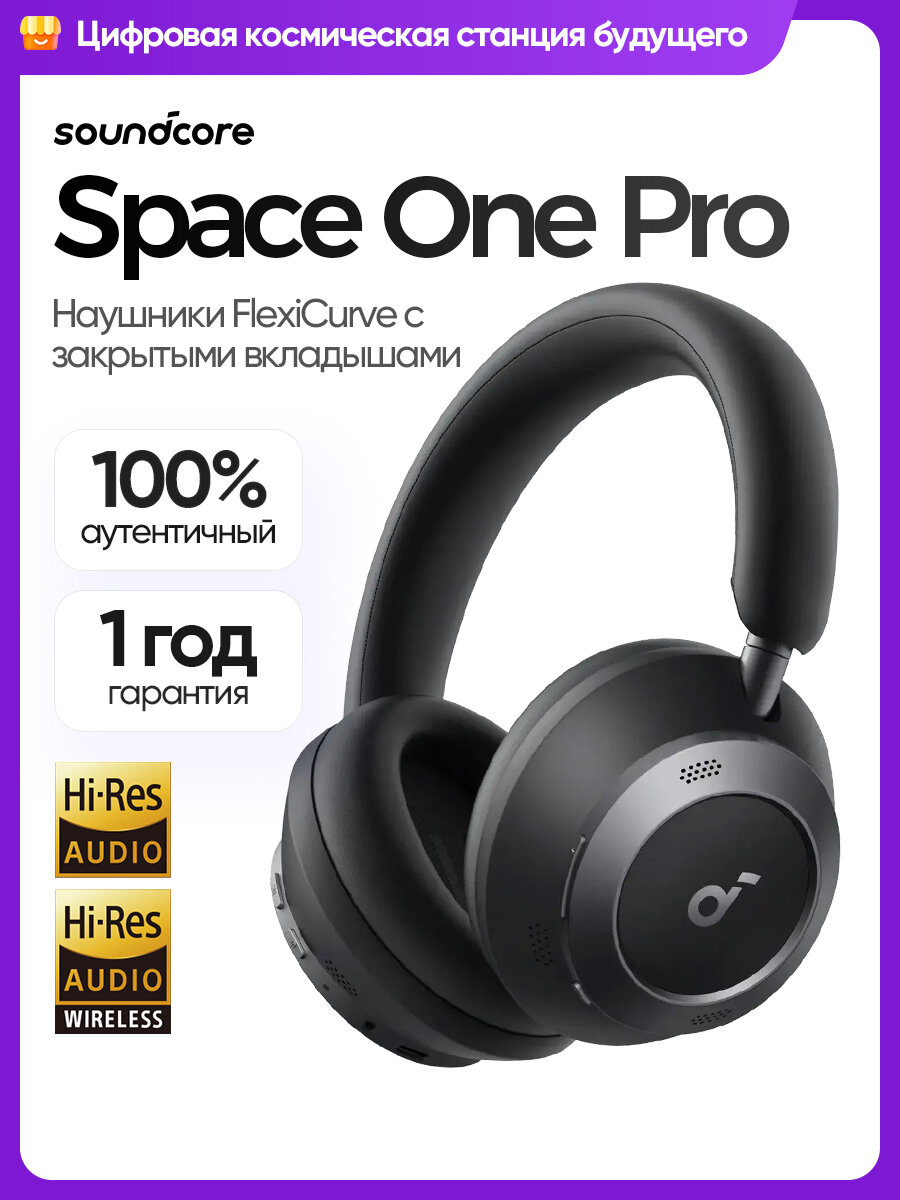 Купить Soundcore Space One Pro Беспроводная Bluetooth-гарнитура, шумоподавление, 4 микрофонов, черное с доставкой по всей России.