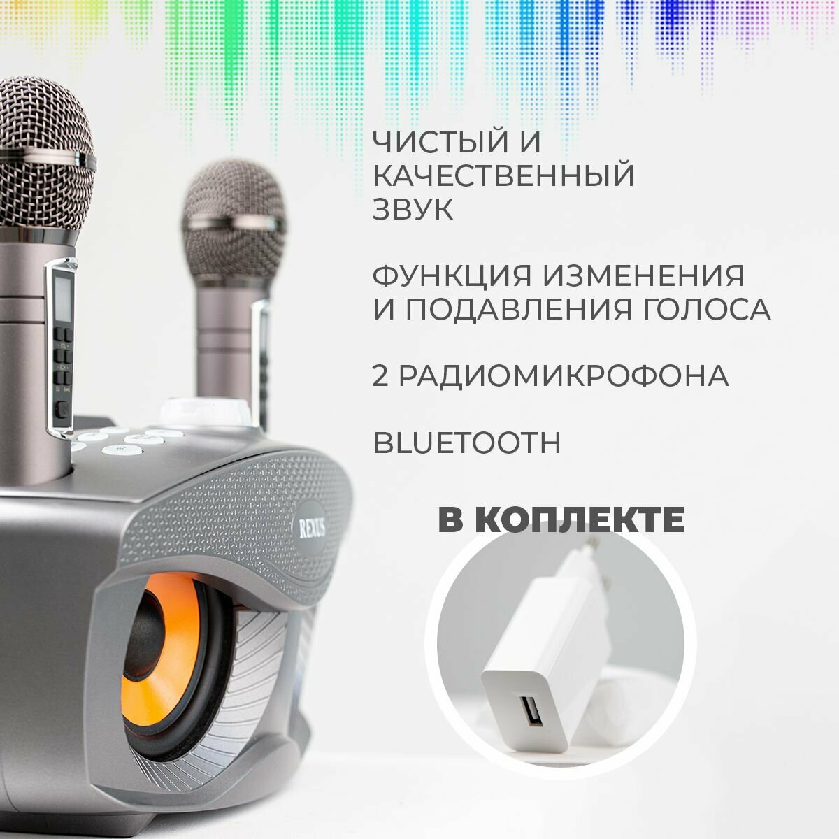 Купить Сова REXUS SD-306 Plus (Grey) — домашняя караоке система, изменение голоса, Bluetooth с доставкой по всей России.