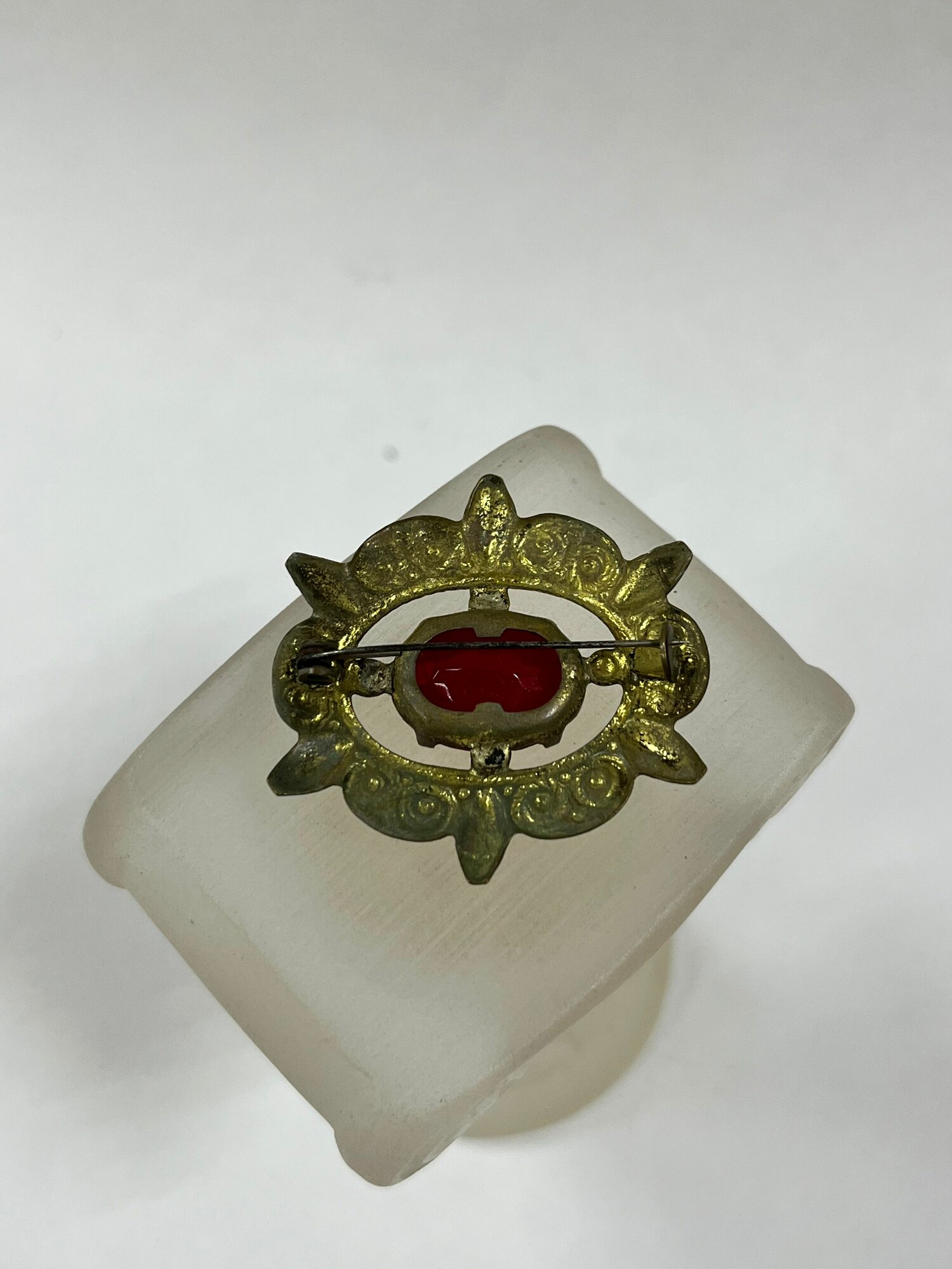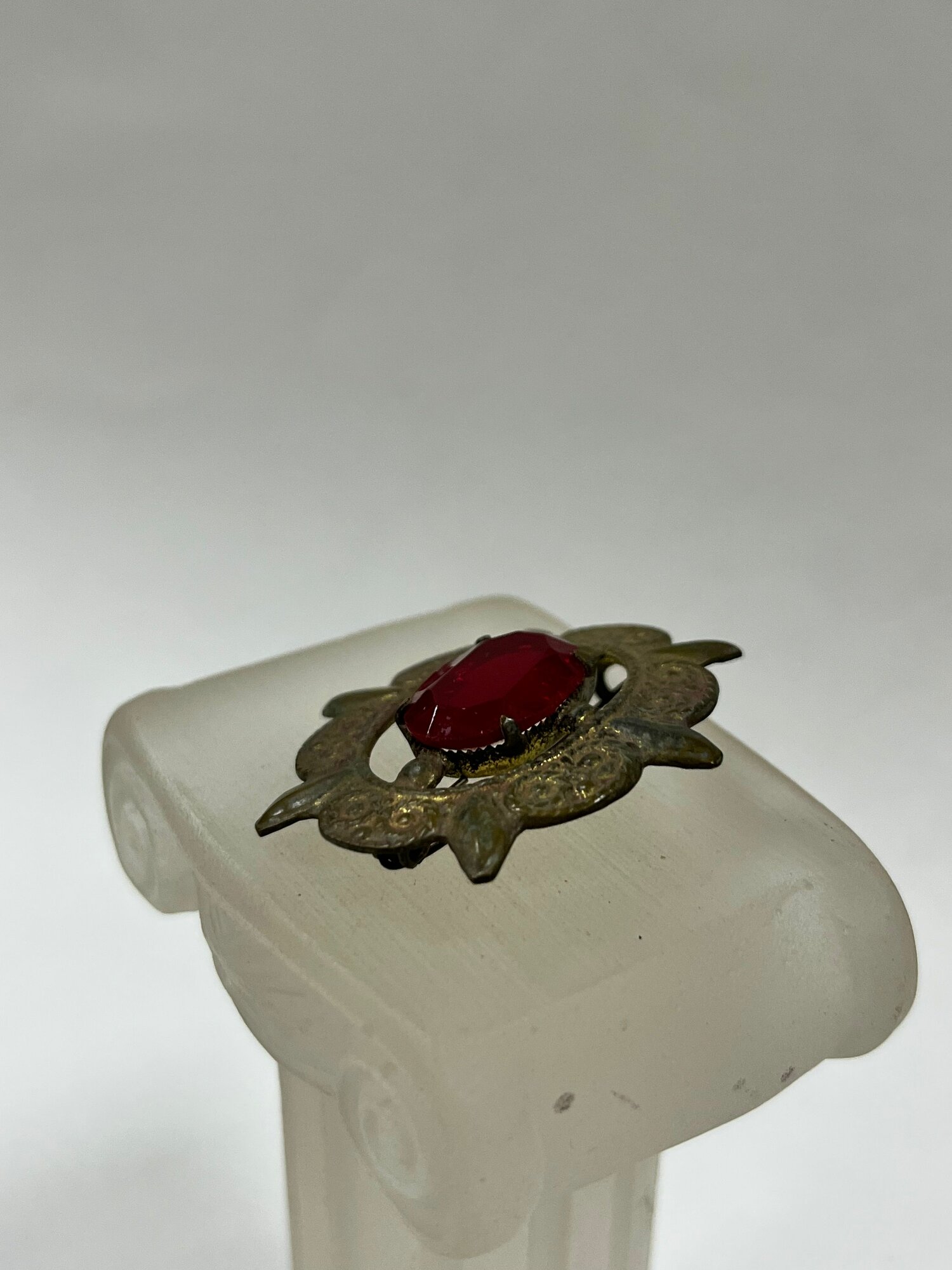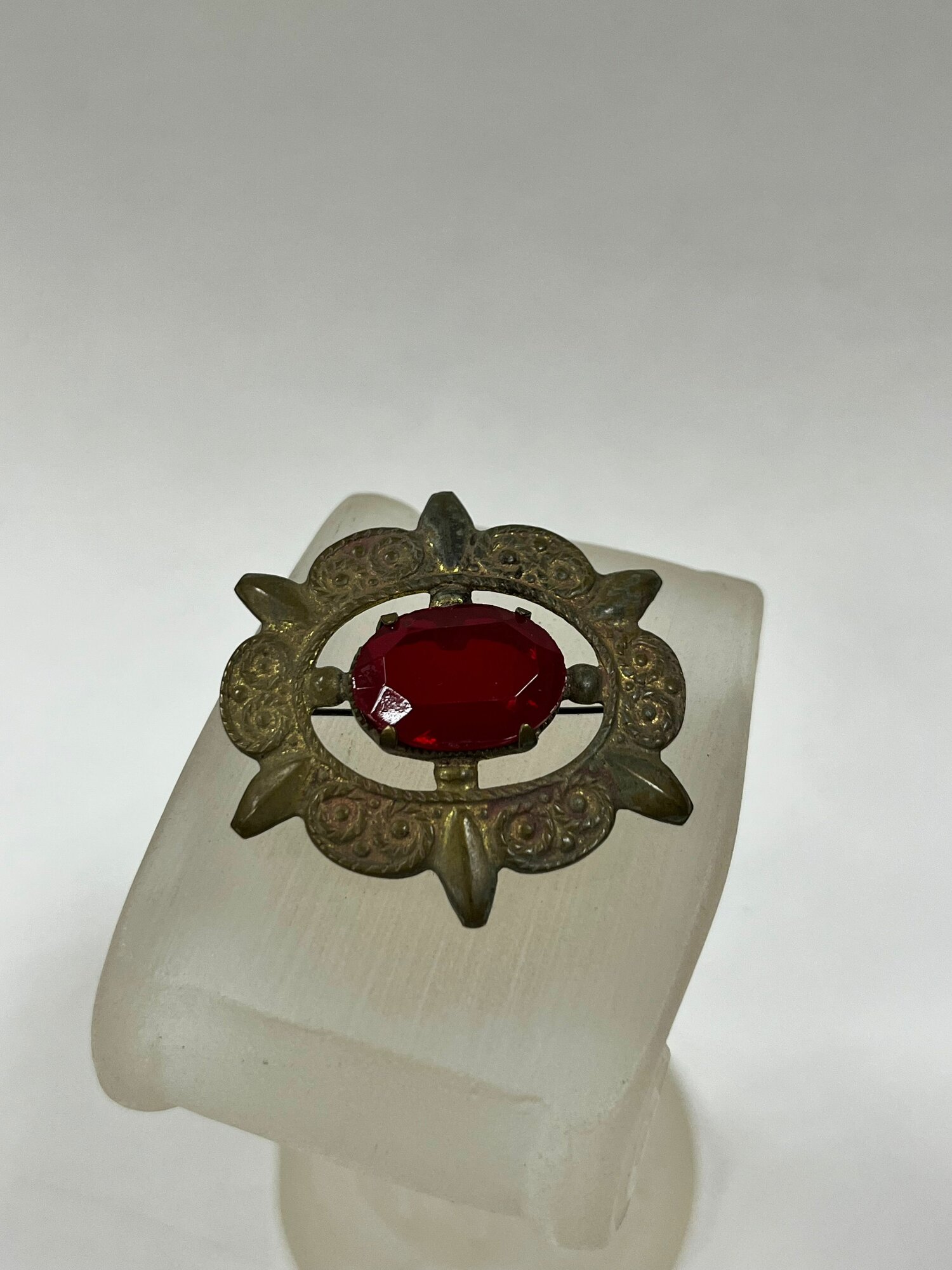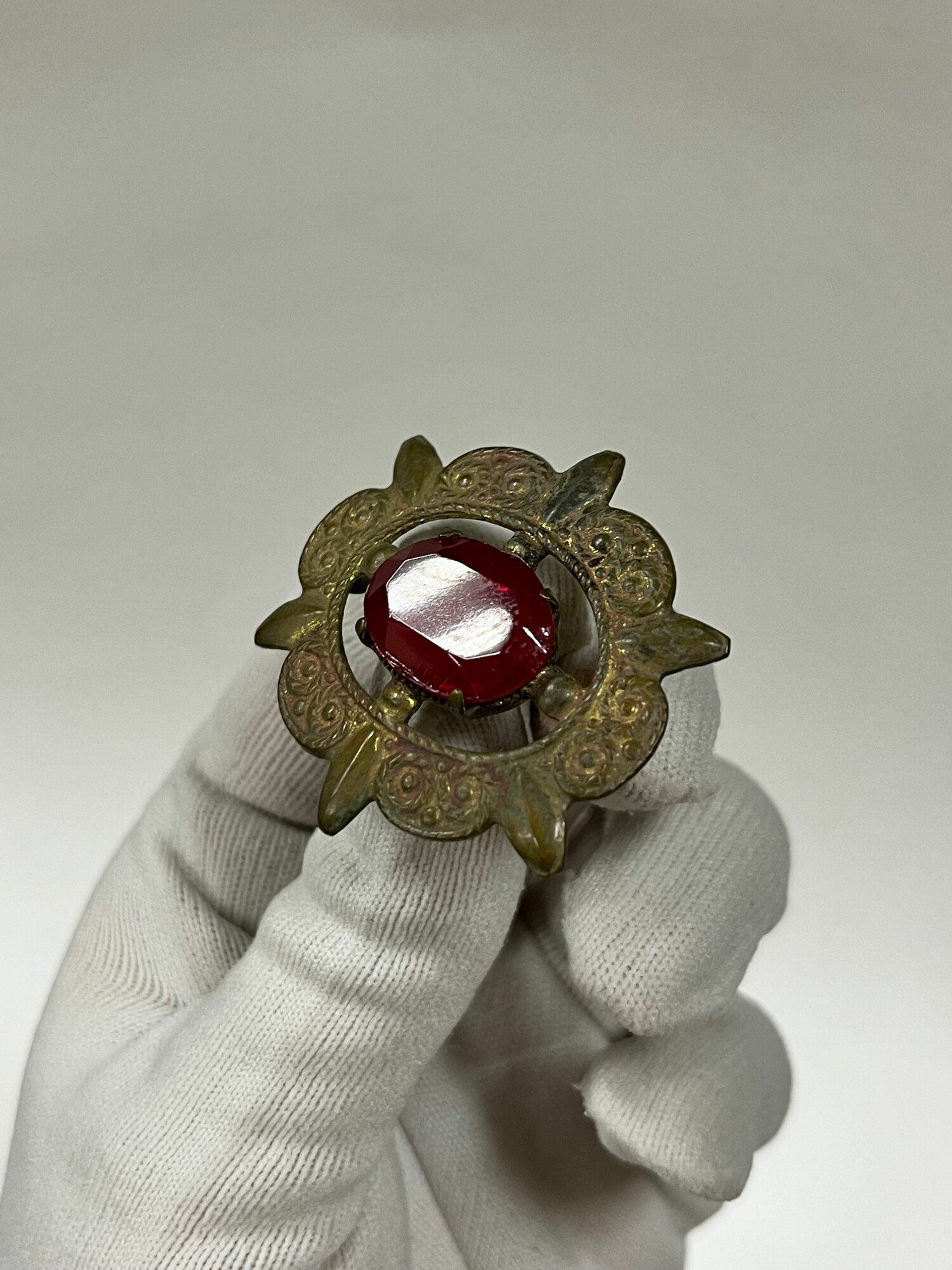 Советская винтажная брошь латунная, красная вставка. Сделано в СССР