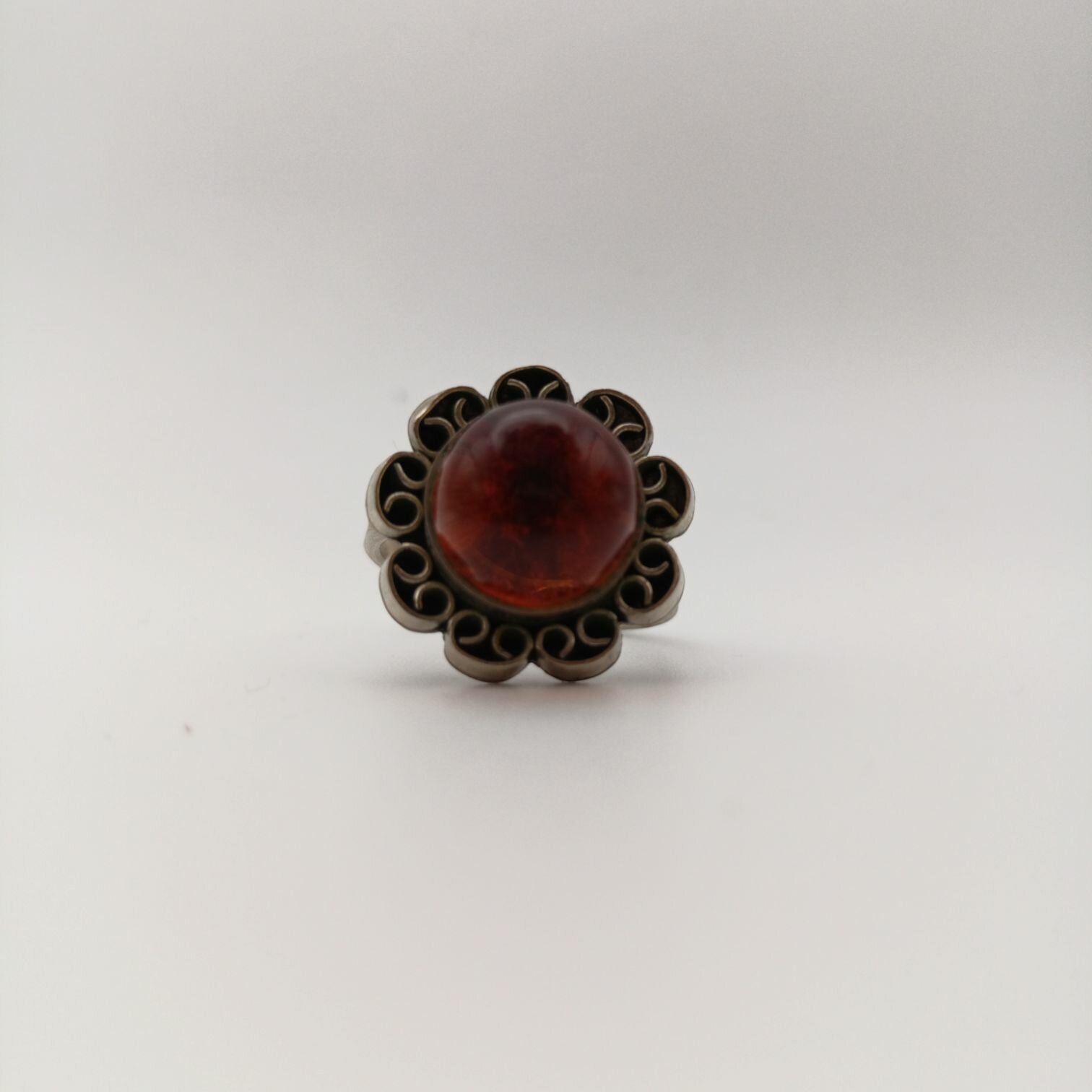 Купить Советское мельхиоровое кольцо цветок с янтарём, есть клеймо, сделано в СССР. с доставкой по всей России.