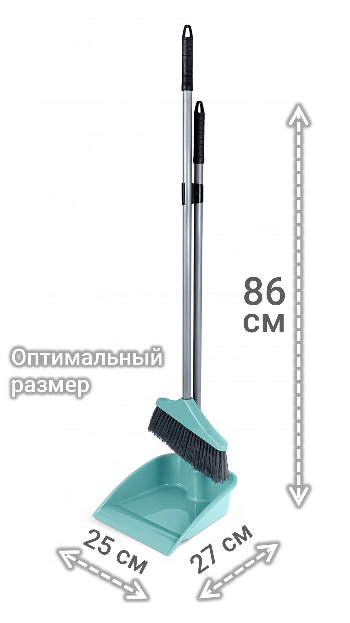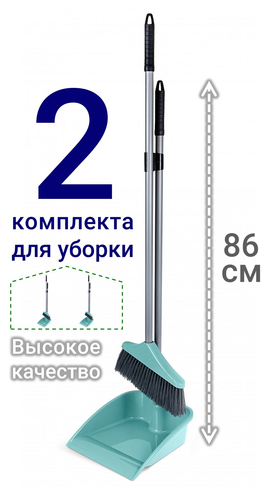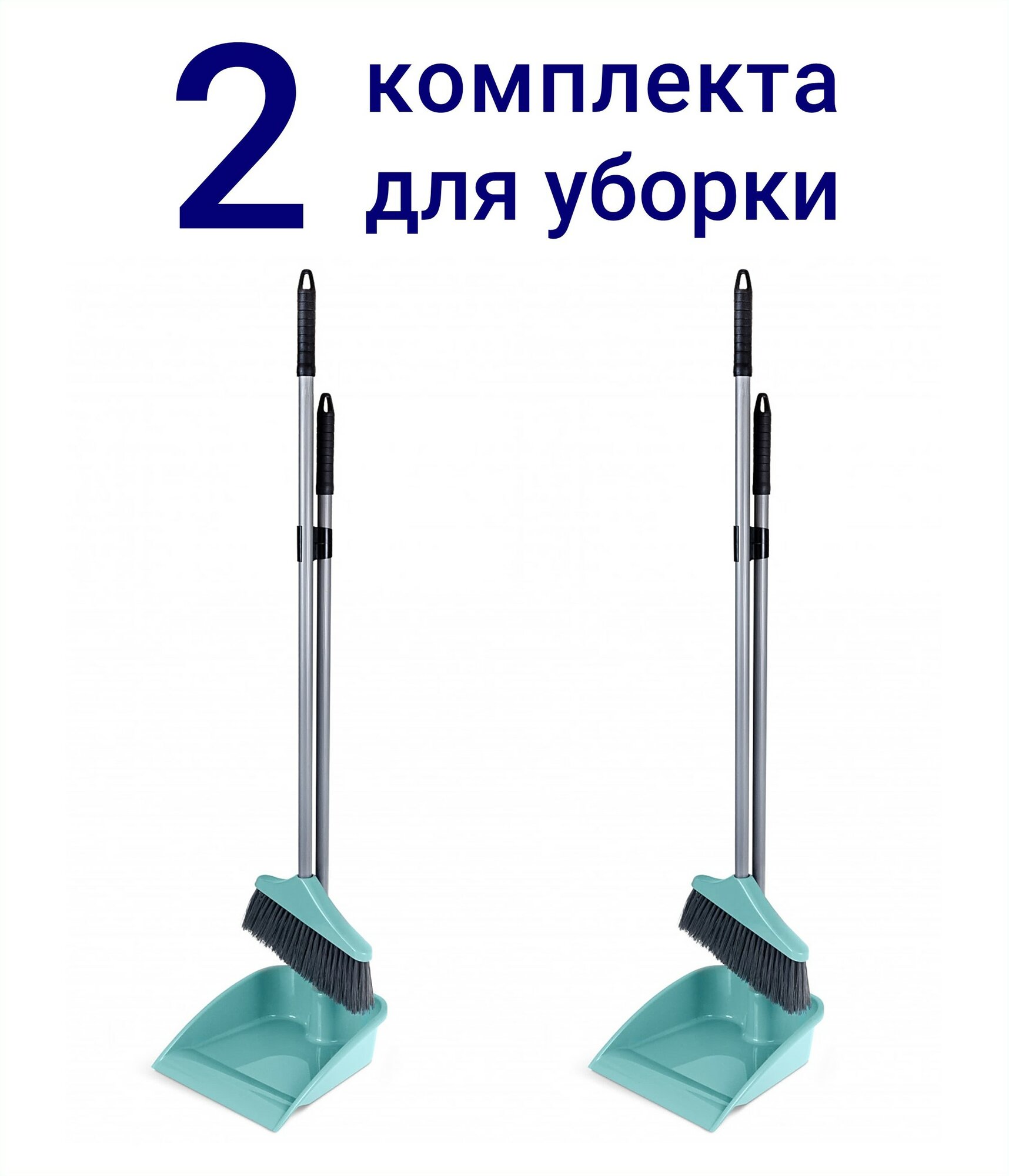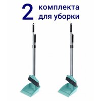 Купить Совок со Щеткой с Высокой Ручкой. 2 комплекта для уборки. Цвет: Бирюзовый. Материал: Пластик. Martika — Мартика с доставкой по всей России.