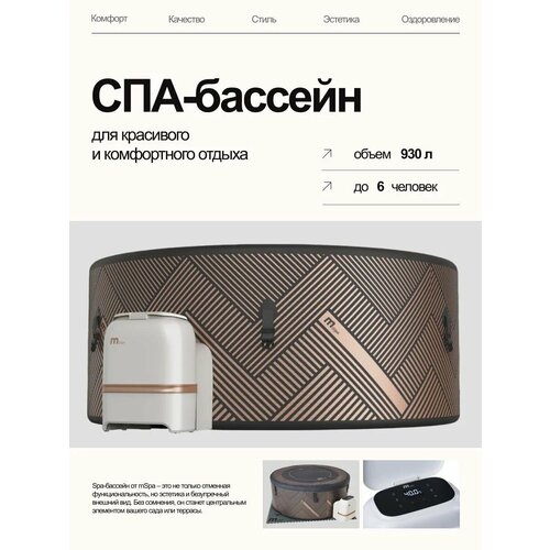 MSPA FRAME Mono Round Bubble Spa – отличный выбор для домашнего СПА-бассейна, подходит для использования как на открытом воздухе, так и в помещении. Вместимость до 6 человек. Корпус (чаша) бассейна из плотного прочного многослойного ПВХ с внутренним антибактериальным покрытием, дно с антискользящей защитой. Чаша обладает устойчивостью к проколам и разрывам. Дизайн стенок в современном роскошном стиле, наружная отделка Champange Gold, внутренняя Iron Grey.