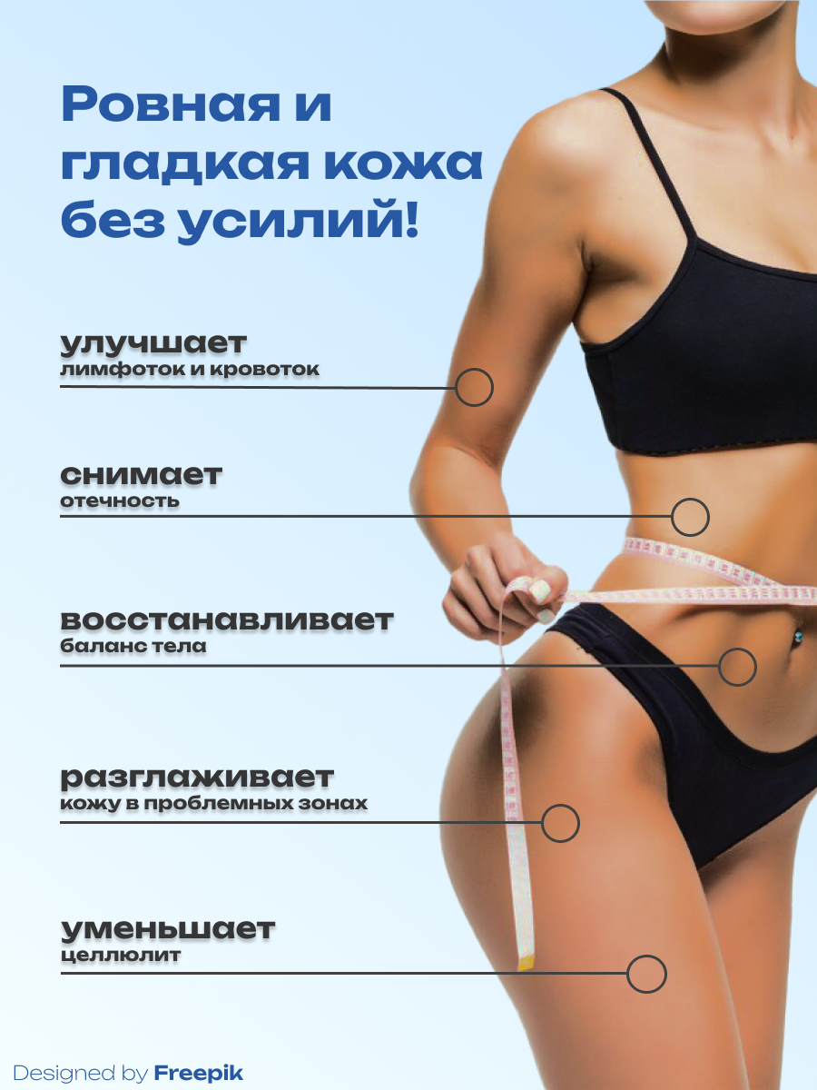 С помощью этого средства можно уменьшить объемы и подтянуть проблемные зоны всего тела. Особенно хорошие результаты показывает на талии, бёдрах и плечах.