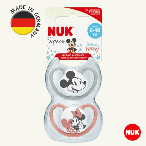 NUK SPACE DISNEY MICKEY Соска-пустышка из силикона для детей от 6 до 18 мес. С этой соской идеально сочетаются клипсы (держатели): -103786654916 NUK Держатель (Клипса) для соски-пустышки с лентой, Микки Маус -103701622968 Ленточка-держатель для соски-пустышки с клипсой, бежевая -103701622967 Ленточка-держатель для соски-пустышки с клипсой, голубая -103701622966 Ленточка-держатель для соски-пустышки с клипсой, зелёная -103701622969 Ленточка-держатель для соски-пустышки с клипсой, розовая -4611617692 Клипса для соски-пустышки с лентой, Винни Пух