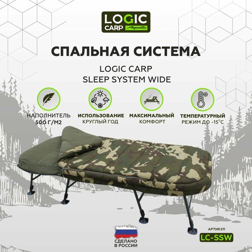 Спальная система Logic Carp 5 SEASON SLEEP SYSTEM wide – полноценная спальная система, состоящая из раскладушки с 8 ножками и спальным мешком 5 сезонов. Новый и улучшенный дизайн, полностью плоский каркас для максимального комфорта. Полная поддержка поясницы – головная, средняя и ножная секции имеют нашу фирменную расположенную внахлест поясничную поддержку, обеспечивающую стабильную жесткость всего матраса. Матрас толщиной 50 мм изготовлен из высокоплотного поролона и холлофайбера, обеспечивающих мягкость и прочность матраса. Раскладушка имеет 8 ножек – 2 сдвоенных ножки в центральной части плюс сдвоенные ножки в ножной и головной секциях. Двойные шарниры позволяют складывать раскладушку с пристегнутым спальником.