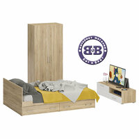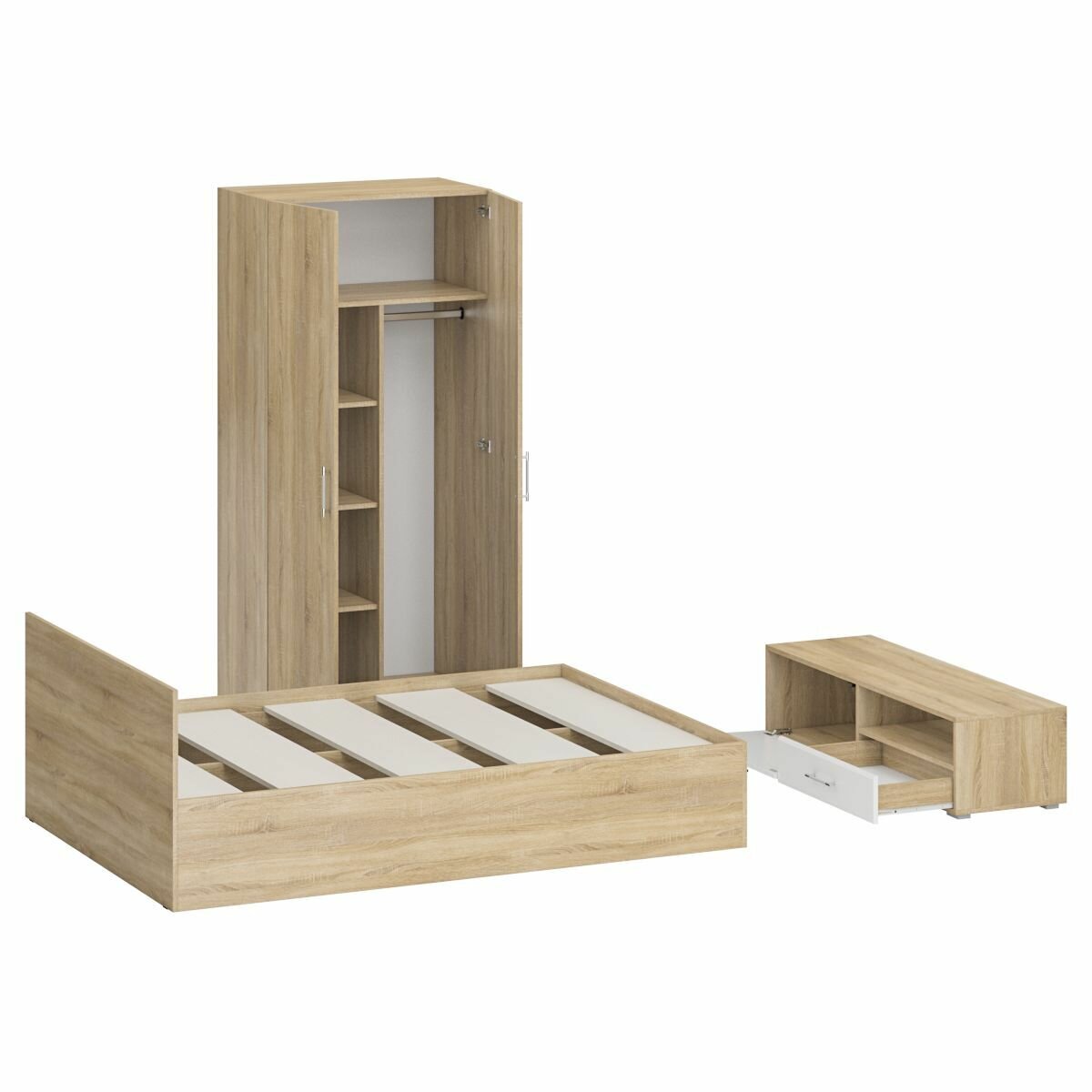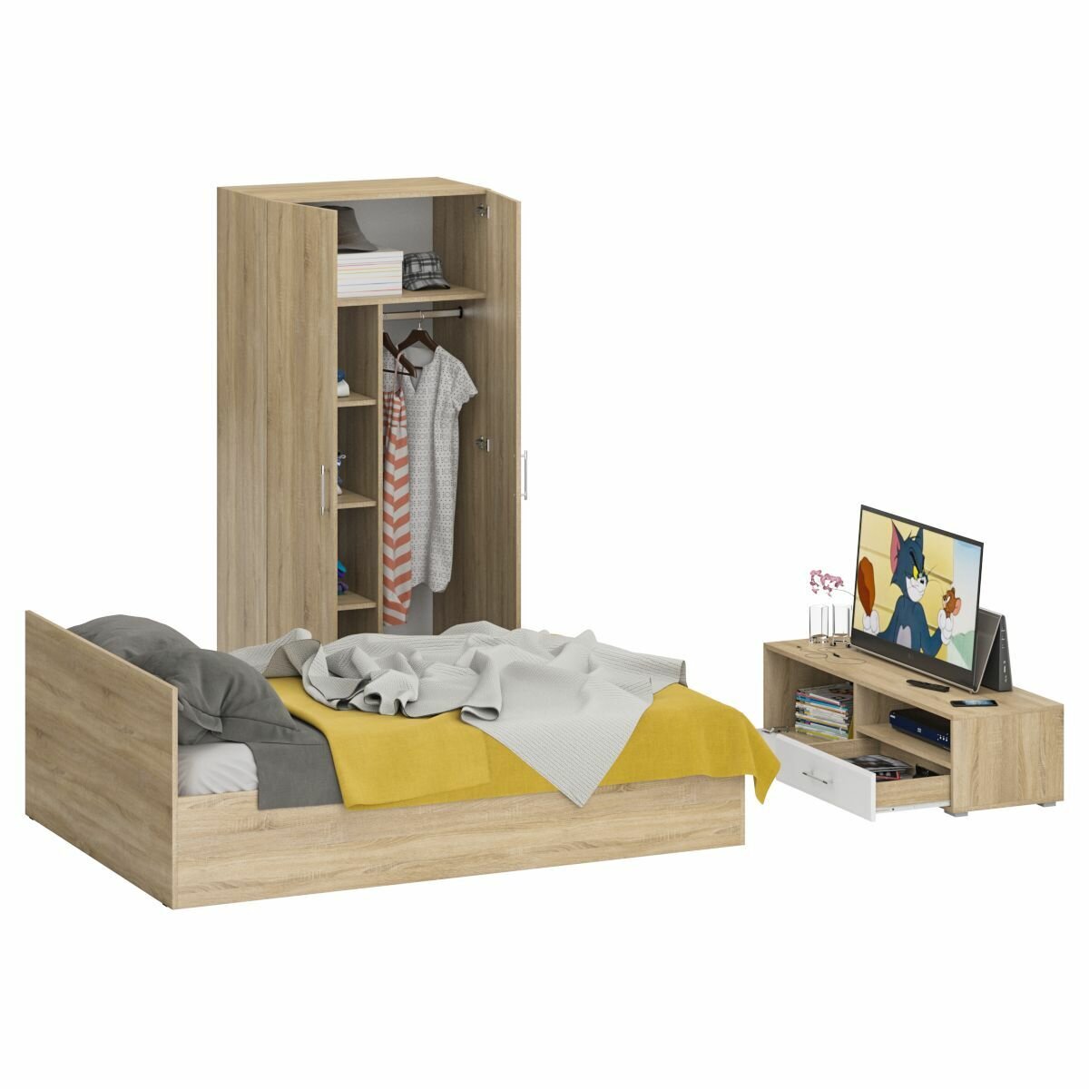 Спальня Стандарт 3-1400, цвет дуб сонома/фасады ТВ тумбы МДФ белый глянец, сп. м. 1400х2000 мм, без матраса, основание есть: сравнение цен, характеристики, фото, актуальное наличие и цены.