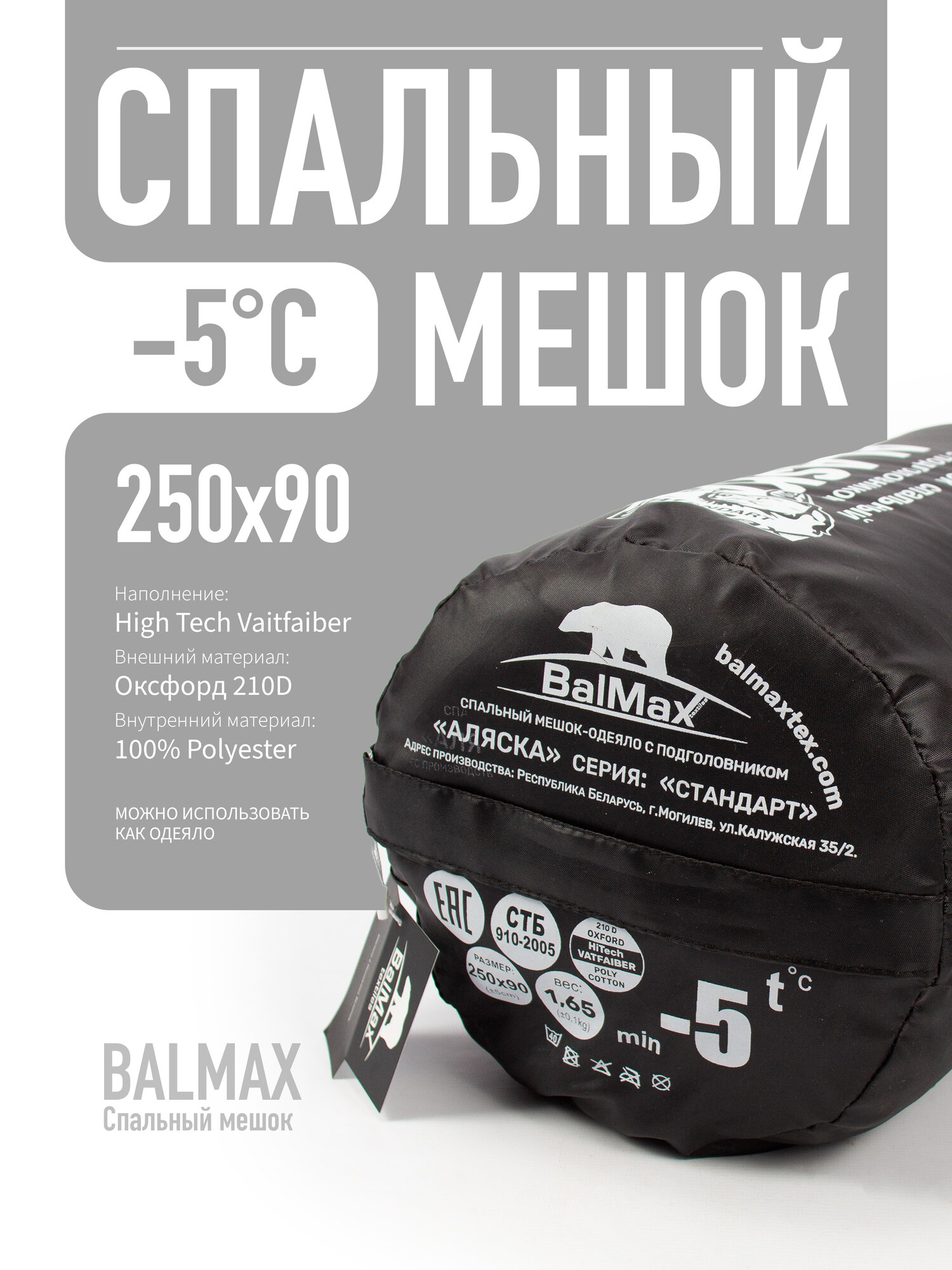Спальный мешок «Аляска»/ «ALASKA» BalMax, standart, до -5 °C (однотон: черный): сравнение цен, характеристики, фото, актуальное наличие и цены.