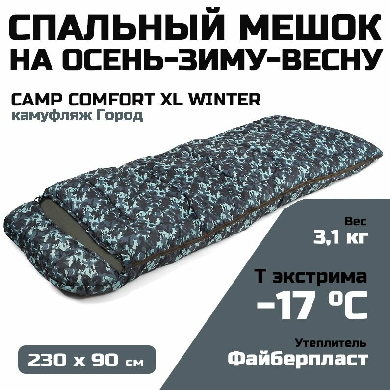 Купить Спальный мешок Camp Comfort XL Winter, до -17C, 230×90см, камуфляж Город -kpa с доставкой по всей России.