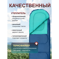 Купить Спальный мешок Чайка СП150, кемпинговый, туристический, термофайбер, синий/мятный, 215х73 см с доставкой по всей России.