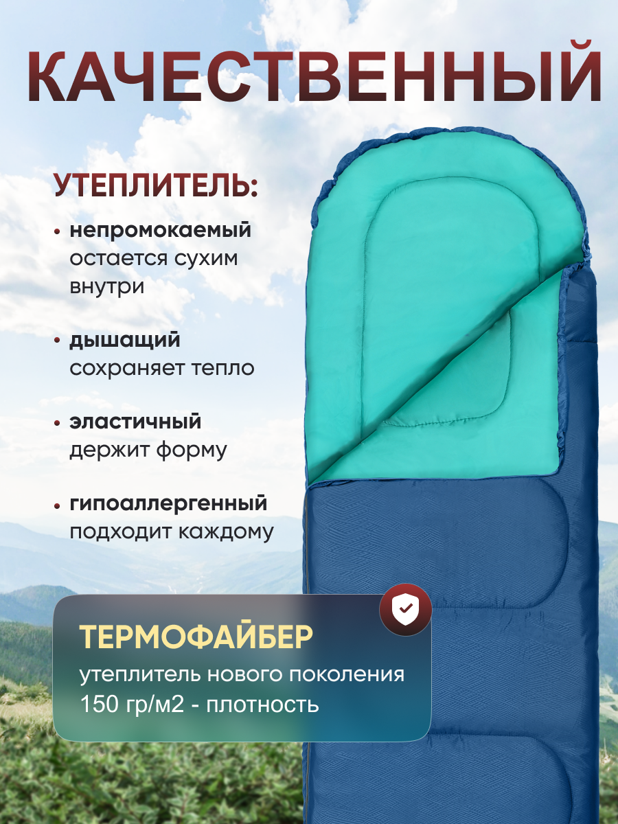 Спальный мешок Чайка СП150, кемпинговый, туристический, термофайбер, синий/мятный, 215х73 см: сравнение цен, характеристики, фото, актуальное наличие и цены.