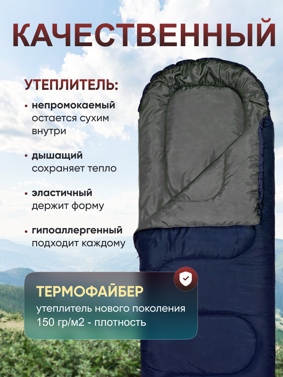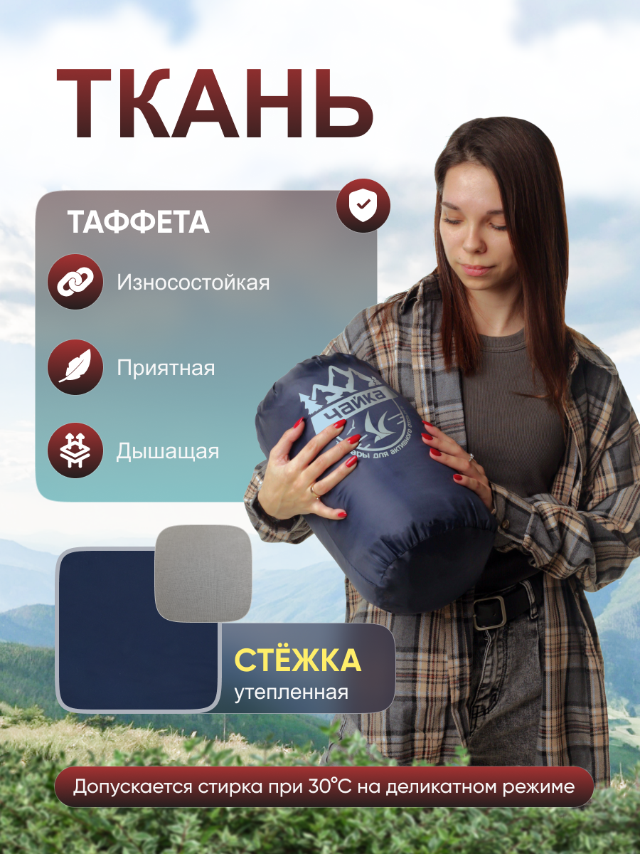 Спальный мешок Чайка СП150, туристический, синий/серый, с капюшоном, 215х73см: сравнение цен, характеристики, фото, актуальное наличие и цены.