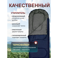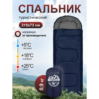 Купить Спальный мешок Чайка СП150, туристический, синий/серый, с капюшоном, 215х73см с доставкой по всей России.