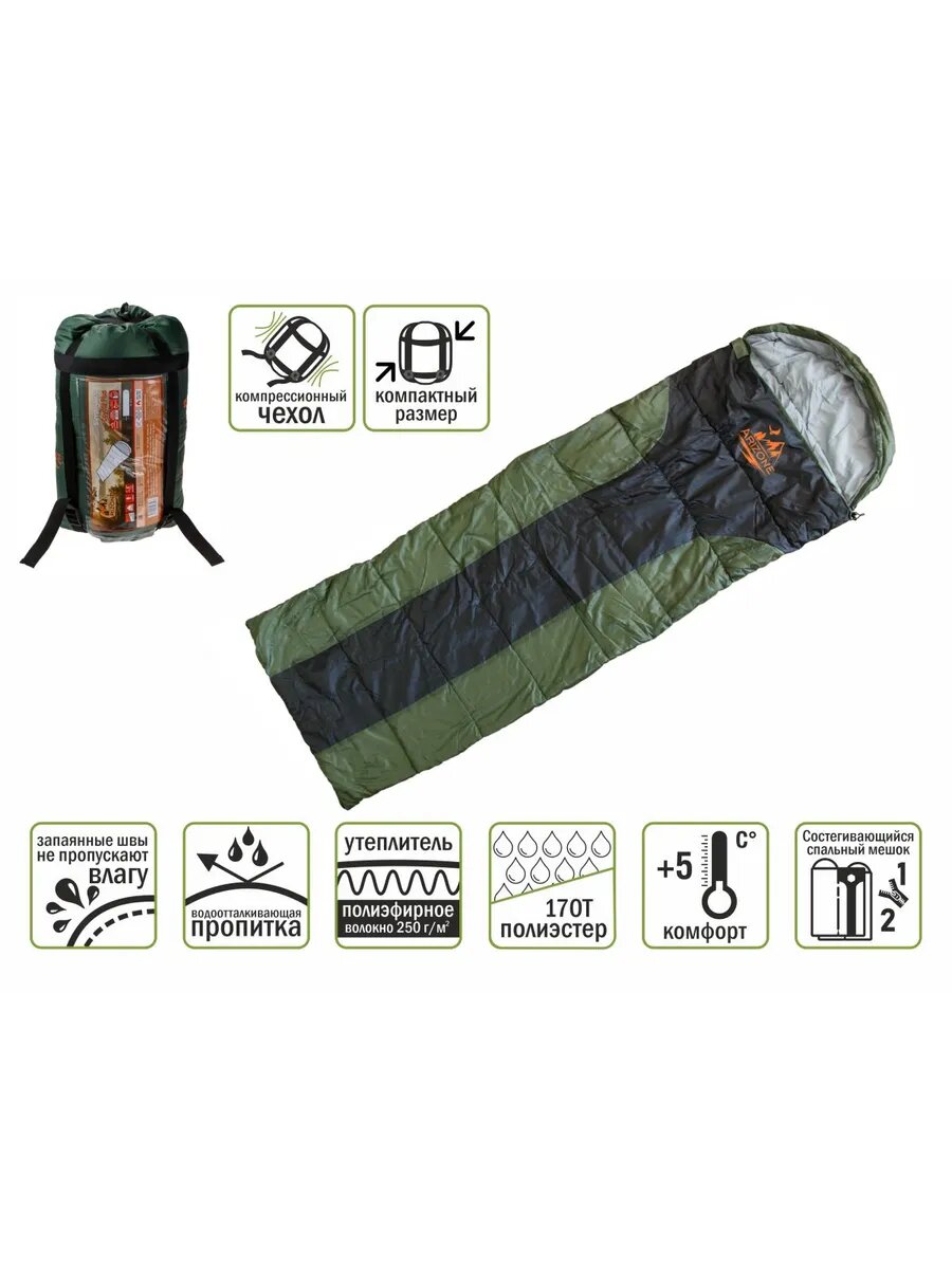 Спальный мешок Coyote Plus, ARIZONE (длина: 190+30 см, ширина: 75 см, состегивается, компрессионный чехол): сравнение цен, характеристики, фото, актуальное наличие и цены.