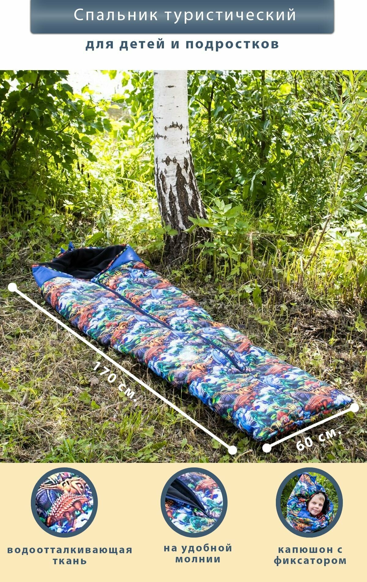 Спальный мешок для детей «Динозавры», яркий принт, рост до 150см, на флисе и синтепоне: сравнение цен, характеристики, фото, актуальное наличие и цены.