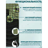 Внутренний материал: мягкая и приятная на ощупь фланель Подголовник L-образная молния Термоклапан вдоль молнии Молния с левой стороны Внутренний карман Небольшой вес Чехол для удобного хранения и переноски