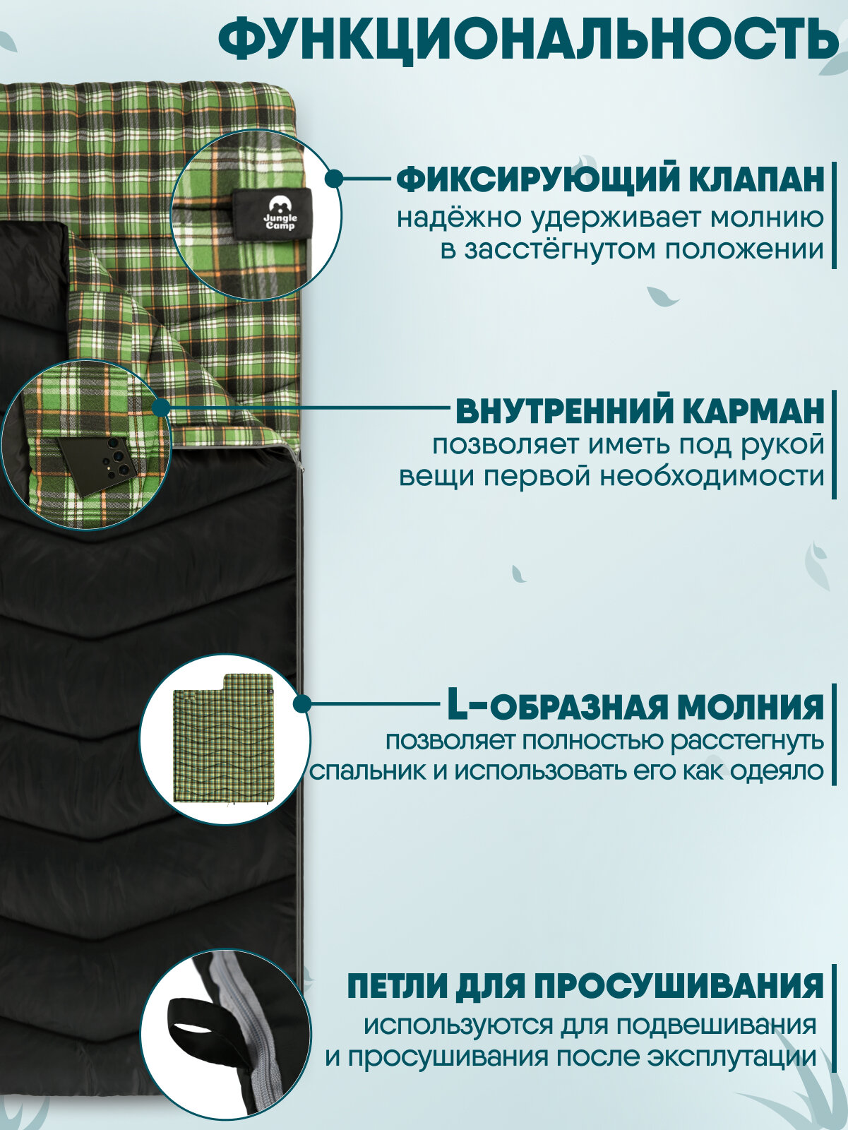 Легкий и удобный в использовании спальник-одеяло с подголовником Jungle Camp Alboro прекрасно подойдет для летних поездок на природу. Для комфортного отдыха используется мягкая и приятная на ощупь фланель. Благодаря небольшому весу и размеру не занимает много места в рюкзаке. Этот спальник пригодится вам во время поездки на пикник, на дачу, во время похода выходного дня. Дома его можно использовать как одеяло для гостей или покрывало. Чтобы уменьшить потери тепла через молнию, вдоль всей ее длины расположен термоклапан.