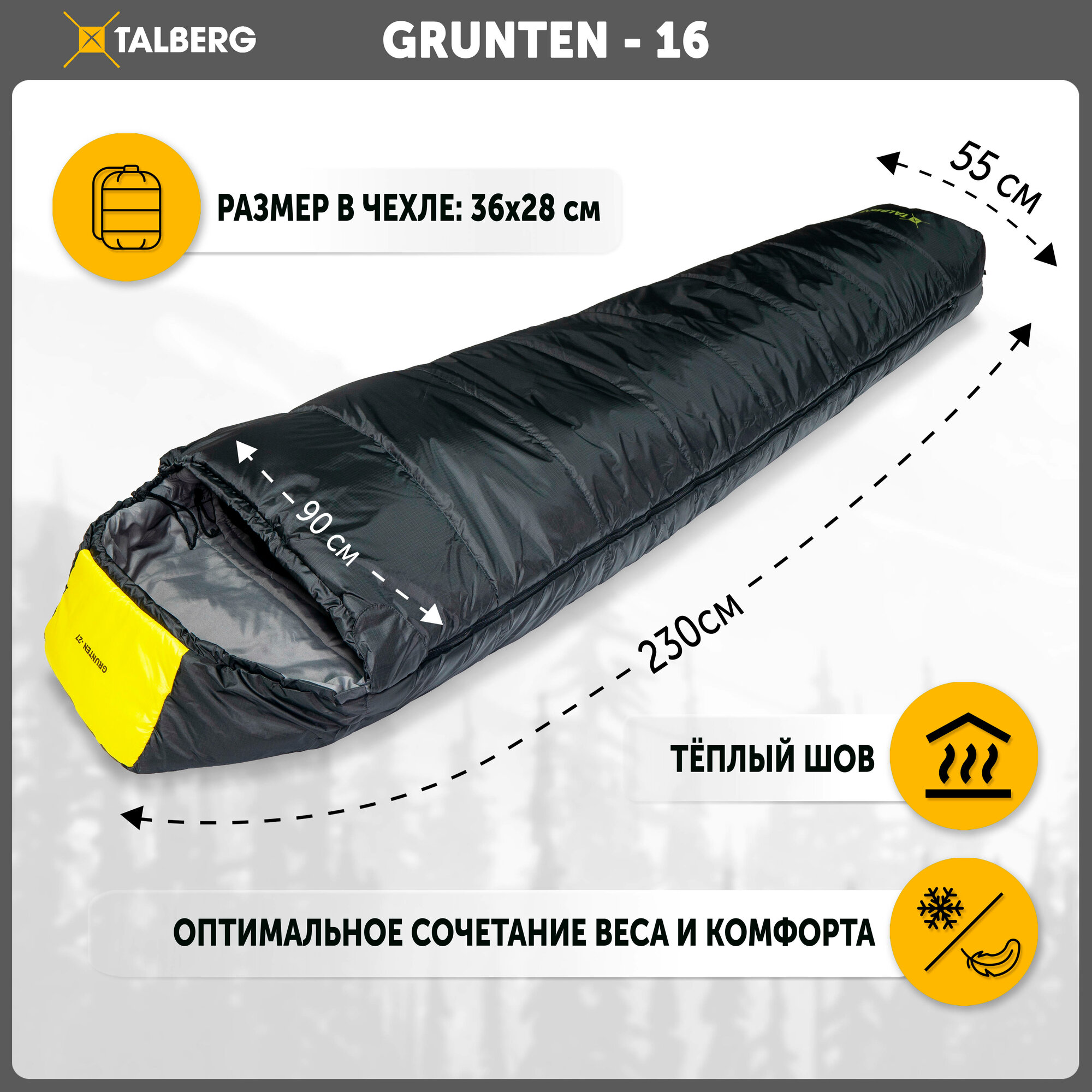 Купить Спальный мешок-кокон Talberg GRUNTEN -16 C, правый с доставкой по всей России.