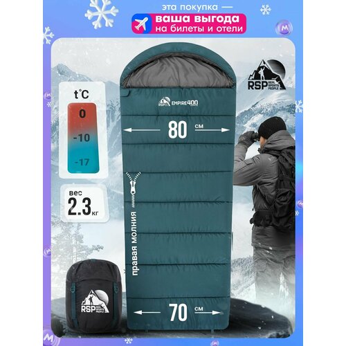 RSP Empire 400 - спальный мешок в котором вы сможете комфортно спать при температуре от 0 до -10 градусов. Размер в сложенном виде – 42*23*23 см, вес -2300 граммов. При выборе спального мешка стоит учитывать, что все температурные показатели рассчитаны на среднестатистического человека. Если вы мерзнете даже в теплое время года, то спальный мешок стоит выбирать с запасом по температурному режиму.