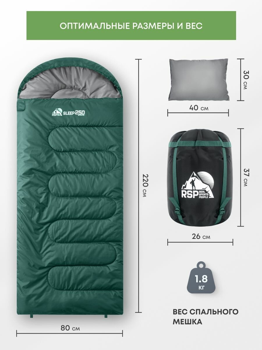 Cпальный мешок хлопковый туристический Sleep 250 от компании RSP – отличный выбор для комфортного сна на природе. Cпальный мешок туристический с подушкой можно использовать с ранней весны до поздней осени, конечно в зависимости от температуры воздуха в конкретном регионе. Cпальник в машину идеально подойдет как для поездок на природу на автомобиле, так и для пеших или вело походов за счет малого веса и объема.