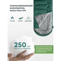 Cпальный мешок с хлопковой подкладкой Sleep 250 сделан в форме одеяла, эта форма является наиболее комфортной и удобной, а молния с 2 сторон позволяет полностью расстегнуть спальник одеяло и использовать как покрывало либо постилку.