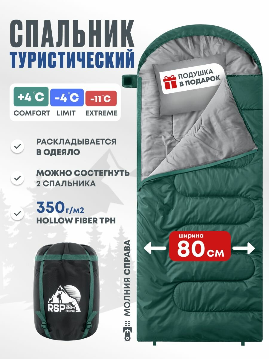 Cпальный мешок туристический с подушкой Sleep 350 от компании RSP – отличный выбор для комфортного сна на природе. Спальник туристический теплый: его можно использовать с поздней весны до ранней осени, конечно в зависимости от температуры воздуха в конкретном регионе. Этот спальный мешок одеяло туристический рассчитан на использование при температуре +5 градусов. -3 температура лимита, а при более низкой температуре спальный мешок -10, сможет согревать вас на протяжение нескольких часов и поможет дождаться помощи спасателей.