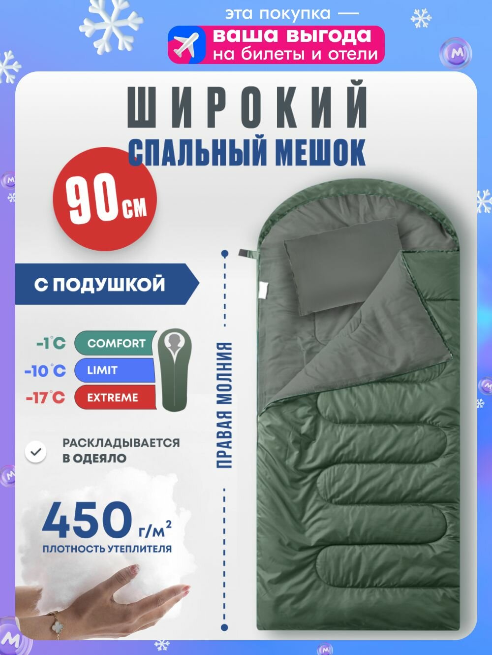 возможность состегивания, двойная молниия, защита от заедания молнии, капюшон, компрессионный мешок, наличие карманов, утепленная молния