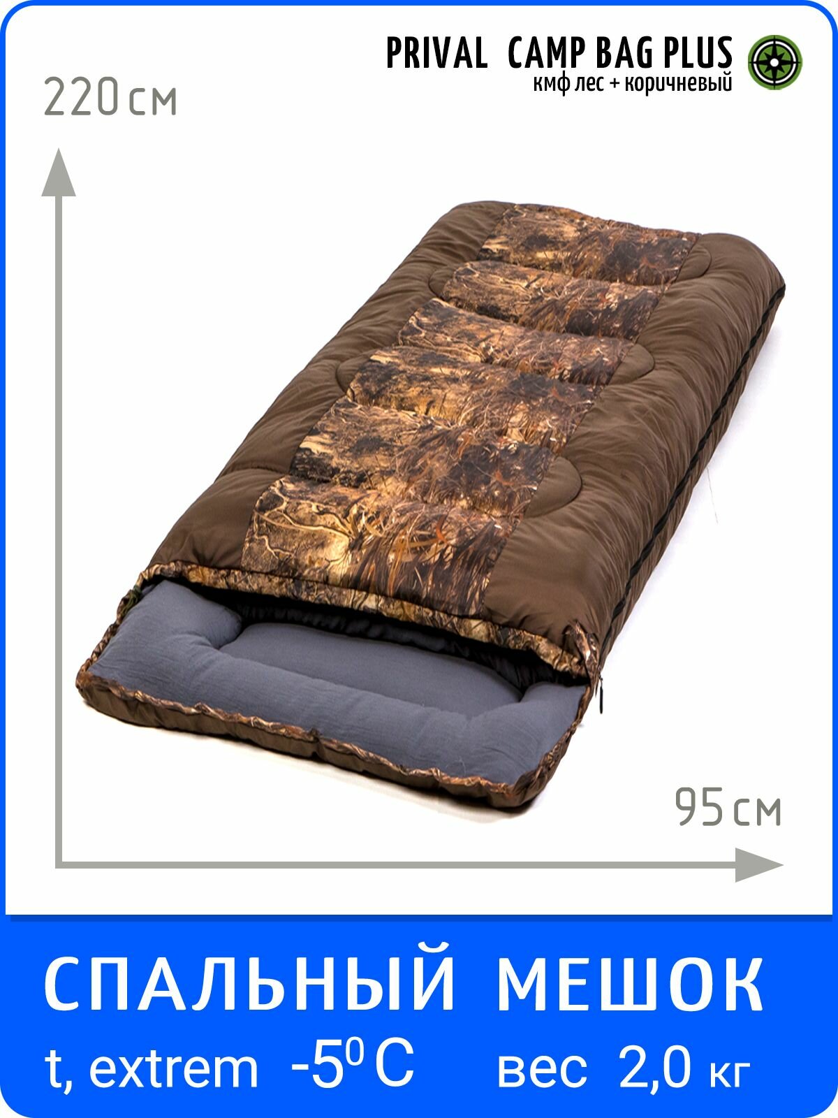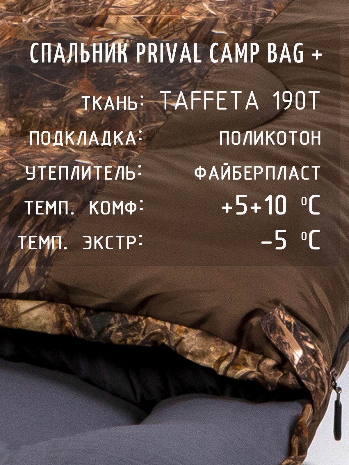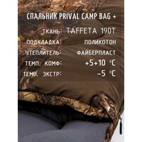 Спальный мешок с подголовником Prival Сamp bag плюс, до -5 С, 220х95см, коричневый + кмф Лес: сравнение цен, характеристики, фото, актуальное наличие и цены.