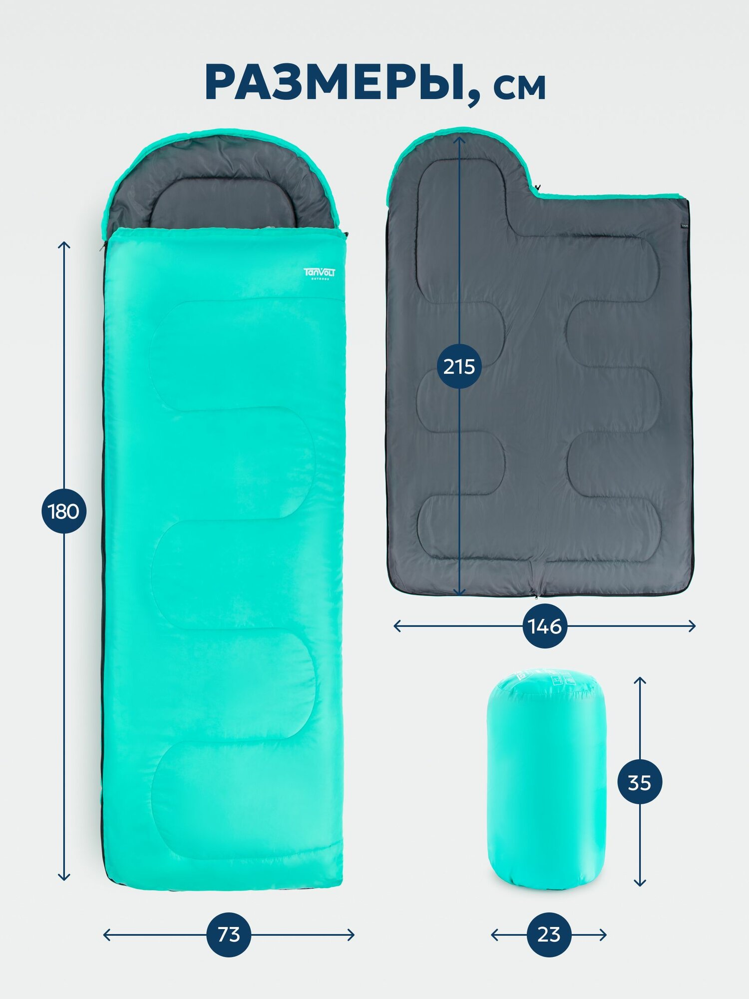* Размер: спальный мешок имеет размеры 215 см в длину и 73 см в ширину, что позволяет удобно разместиться взрослому человеку. Также он может быть использован в качестве одеяла или покрывала.