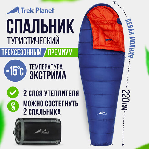 Комфортный и удобный трехсезонный спальник TREK PLANET BERGEN подойдет для длительных походов в весенне-осенний период. Внутренний материал спальника - дышащий и приятный на ощупь полиэстер 210Т Cire. Внешний материал спальника выполнен из прочного, износостойкого полиэстера 210T RipStop с водоотталкивающей пропиткой. Спальник не даст замерзнуть при небольших заморозках благодаря современному семиканальному утеплителю Hollowfiber 7H. Для повышения теплоизоляции в спальнике вдоль всей молнии расположен клапан, защищающий от проникновения холодного воздуха, и тепловой воротник, который уменьшает потери тепла и позволяет быстрее согреться. Чтобы сделать спальник как можно удобнее в нем предусмотрена защита от заедания молнии в виде ленты из плотного материала и внутренний карман для мелочей. Спальники BERGEN с левой и правой молнией можно состегнуть, получив один более теплый спальник для двоих.