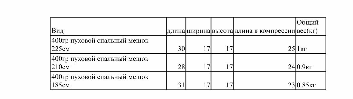 400 грамм наполнителя. Размеры: 210х80х50 см (температура комфорта от +5 до 0 С).