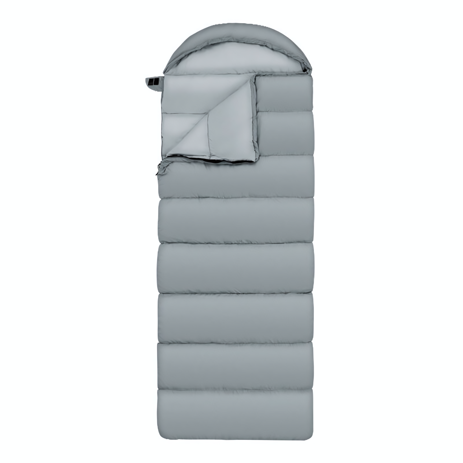 Спальный мешок оснащен капюшоном, который обеспечивает дополнительную защиту от холода и ветра.