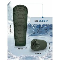 Спальный мешок с капюшоном зимний БАЮН-25, форма кокон, цвет олива, - бюджетный вариант спальника для экстремально холодных температур.