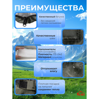 Большой спальный мешок зимний туристический имеет крепкие швы, молнию с бегунком и замком. Мешок спальный удобно расстегнуть и застегнуть даже находясь внутри него, он оснащен двухсторонним бегунком. Ткань чехла непромокаемая, водоотталкивающая, легко чистится. Верхний слой туристического спального мешка на лето или зиму - износостойкий полиэстер с водоотталкивающей пропиткой, материал отлично защищает от ветра и отражает УФ-лучи, отлично держит тепло. Наполнителем служит холлофайбер плотность 175 г/м кв, температура комфорта: +15°, выдерживает температуру от -10°.