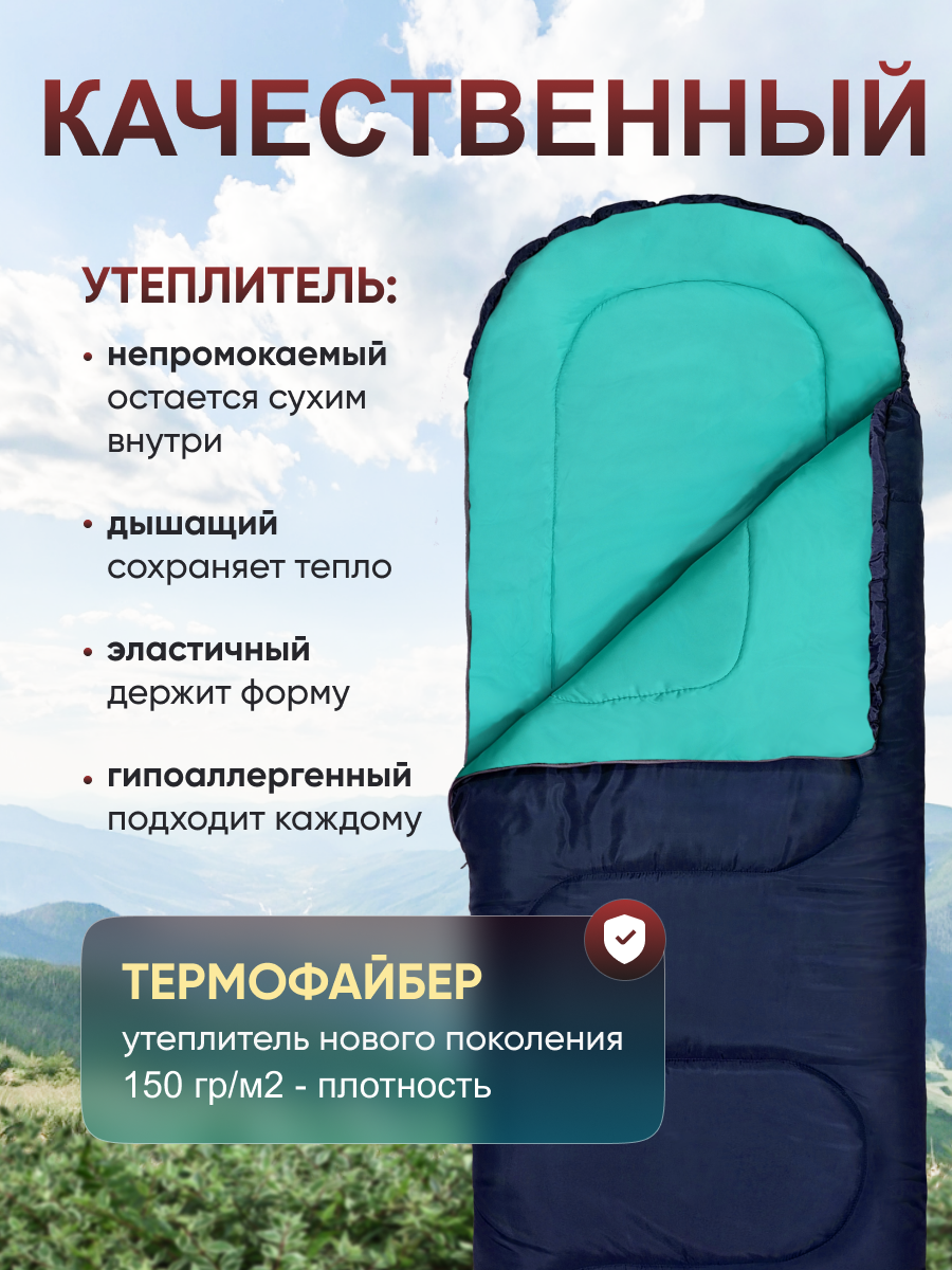 Спальный мешок туристический ЧАЙКА СП150 синий/мята с подголовником: сравнение цен, характеристики, фото, актуальное наличие и цены.