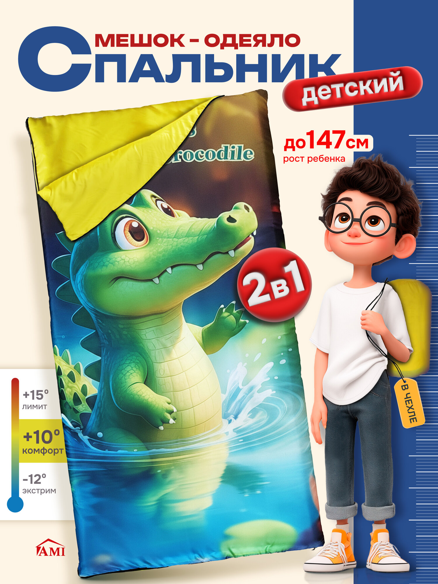 Купить Спальный мешок, туристический, детский для сна Crocodile 147 см, спальник одеяло для туризма похода и рыбалки Ами Мебель с доставкой по всей России.