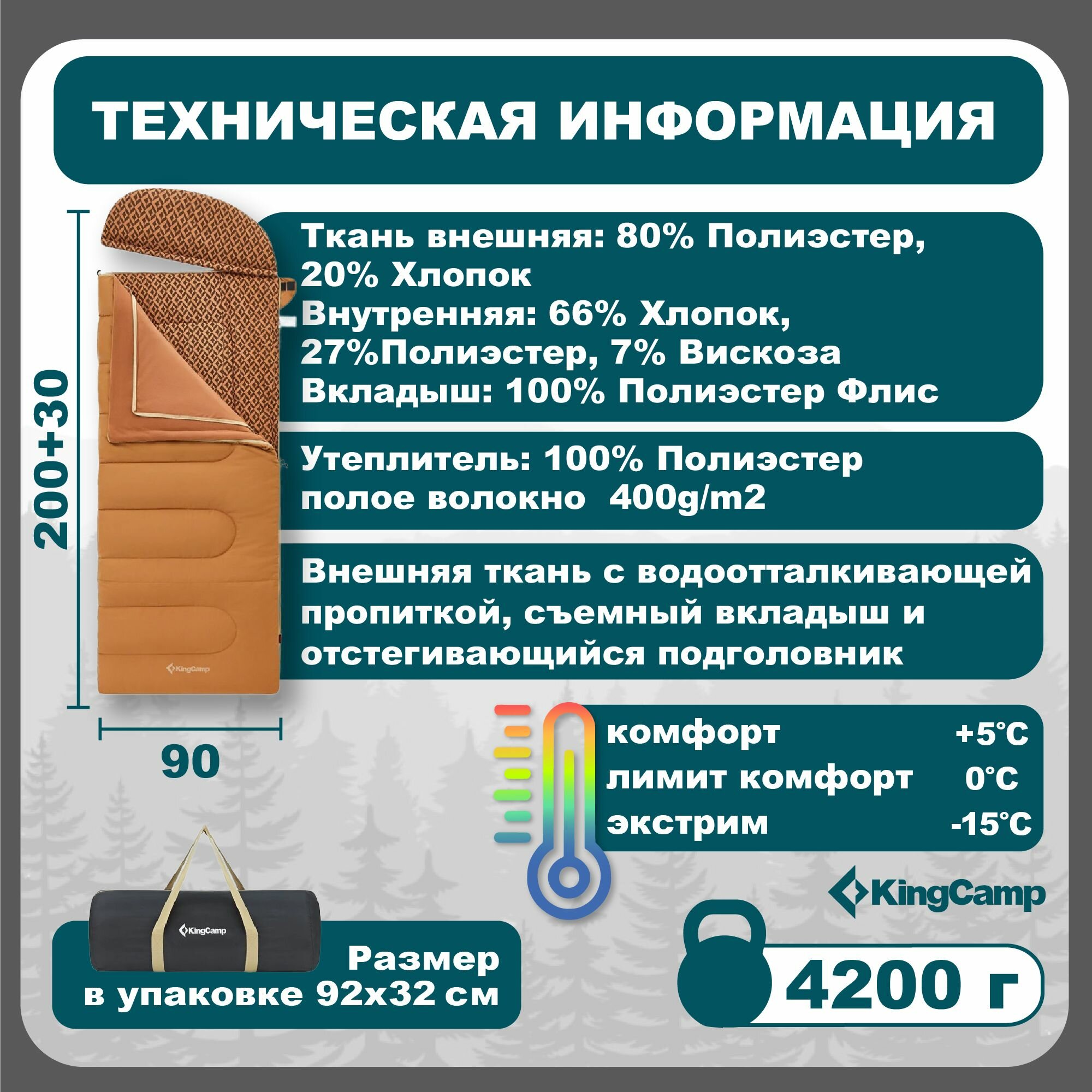 Спальный мешок туристический одеяло KingCamp KS2201 FOREST 400 -15C, левая молния: сравнение цен, характеристики, фото, актуальное наличие и цены.