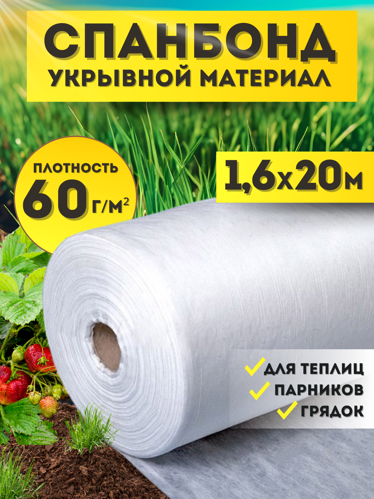 Спанбонд белый укрывной садовый 60 г/м2 1,6×20 м. Геотекстиль, чехол для теплиц, растений, грядок , нетканый материал, укрытие для растений.: сравнение цен, характеристики, фото, актуальное наличие и цены.