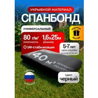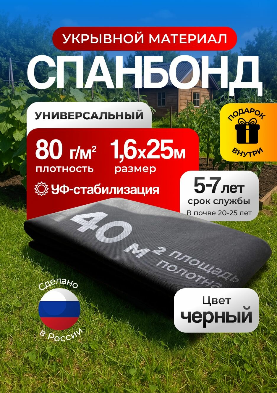 Спанбонд укрывной материал, для сада и строительства, ширина 1,6 м, длина 25 м, плотность 80 г/м², чёрный матовый: сравнение цен, характеристики, фото, актуальное наличие и цены.
