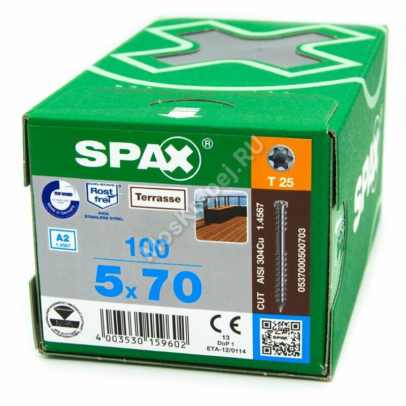 Spax-D для террасной доски 5*70мм 0537000500703 нержавейка А2 (100 шт), T-25: сравнение цен, характеристики, фото, актуальное наличие и цены.