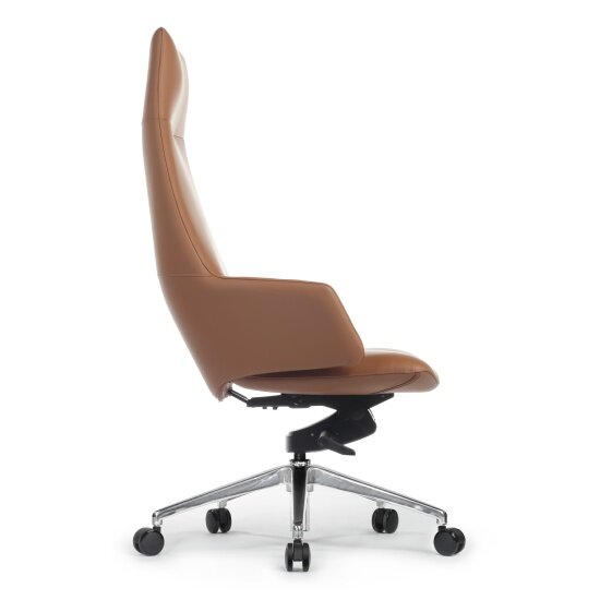 Обивка кресла выполнена из натуральной кожи светло-коричневого цвета, что придает ему элегантный и респектабельный вид. Материал обивки обеспечивает долговечность и комфорт при использовании.